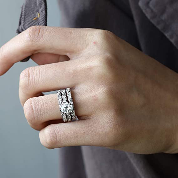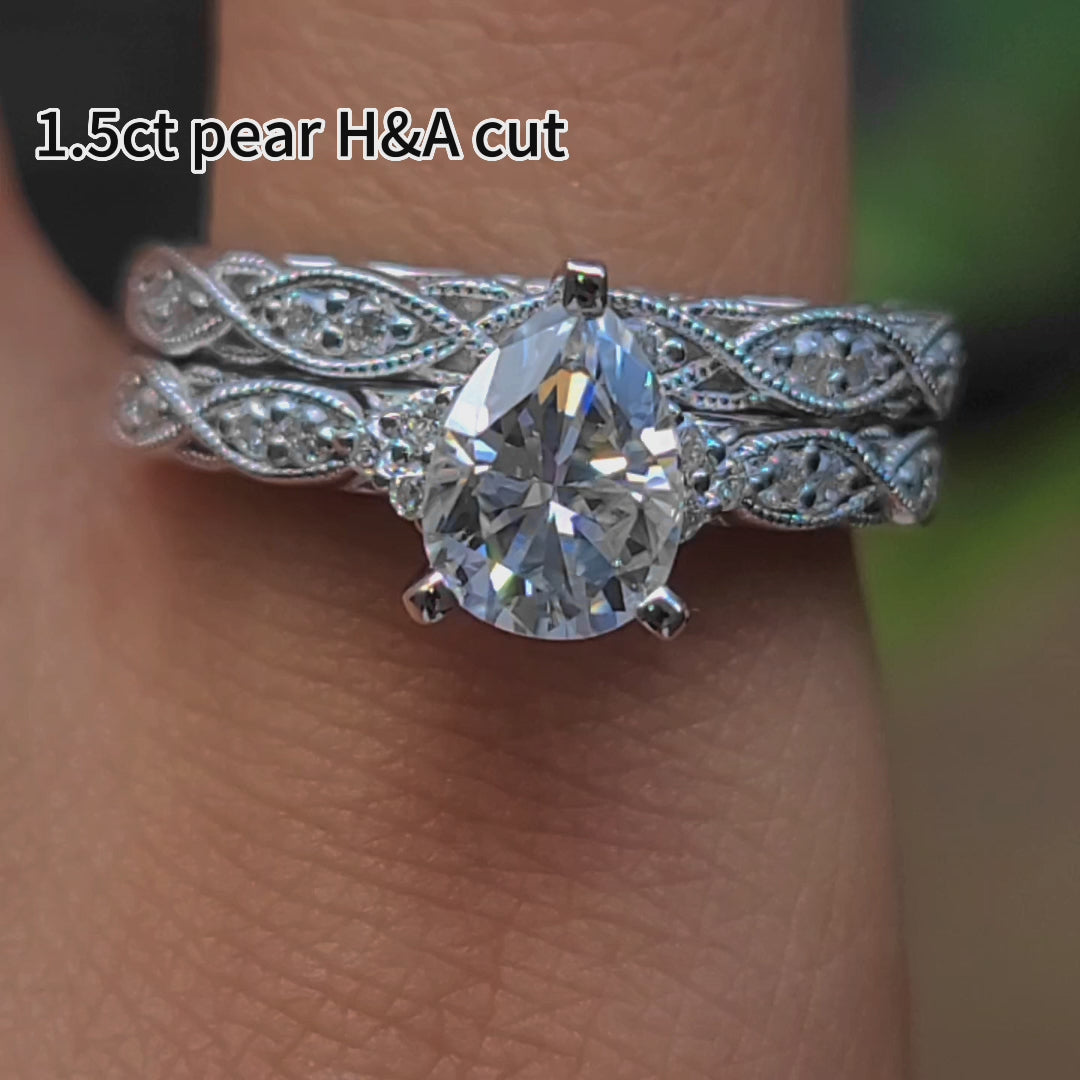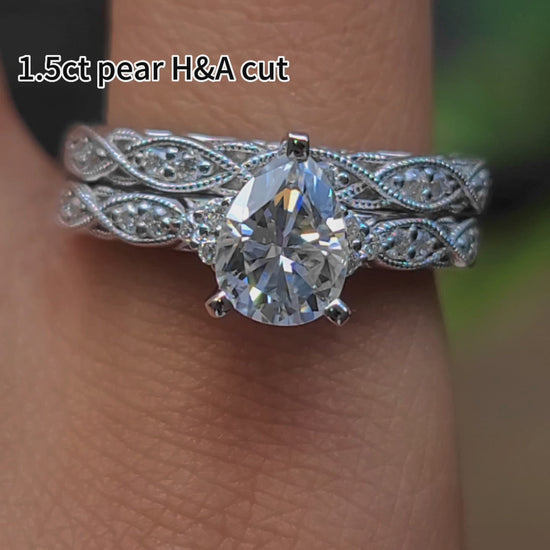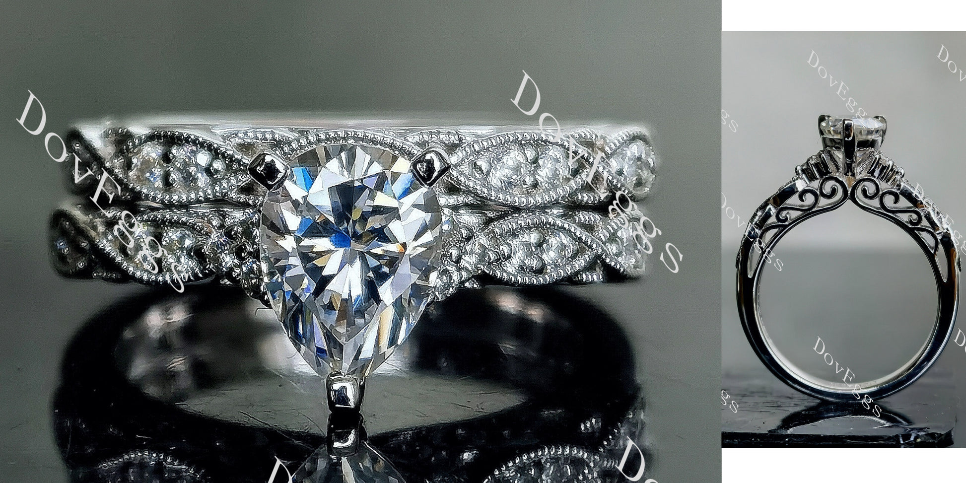 DovEggs 1.5ct (G-H-I) Color Pear Vintage moissanite Engagement Ring/Bridal Set (Amazon clearance)