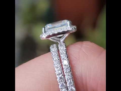 Doveggs 2ct emerald center 3.17cttw light blue halo pave silver moissanite bridal set
