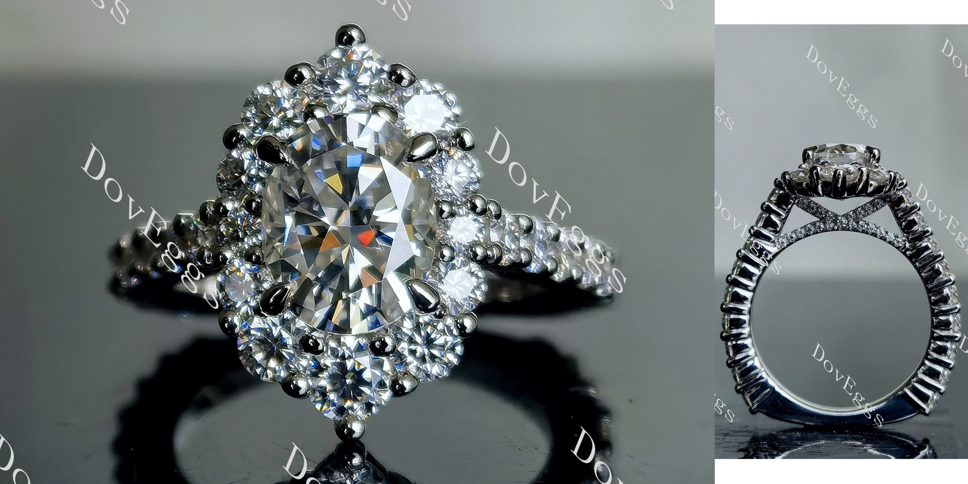 DovEggs 2ct (G-H-I) Color Oval Asrto Pave moissanite Engagement Ring (Amazon clearance)