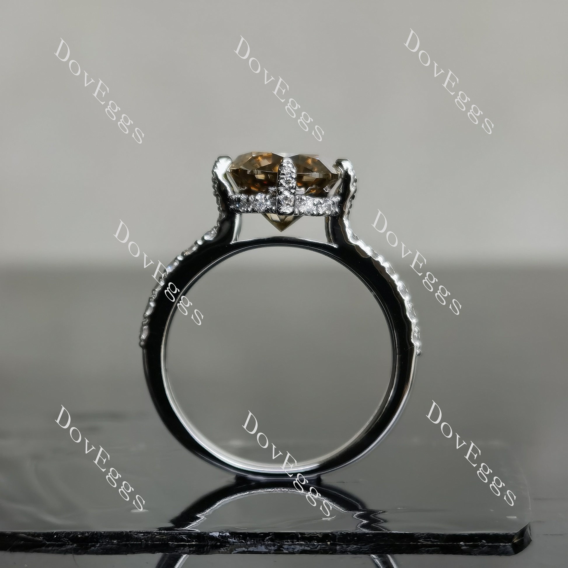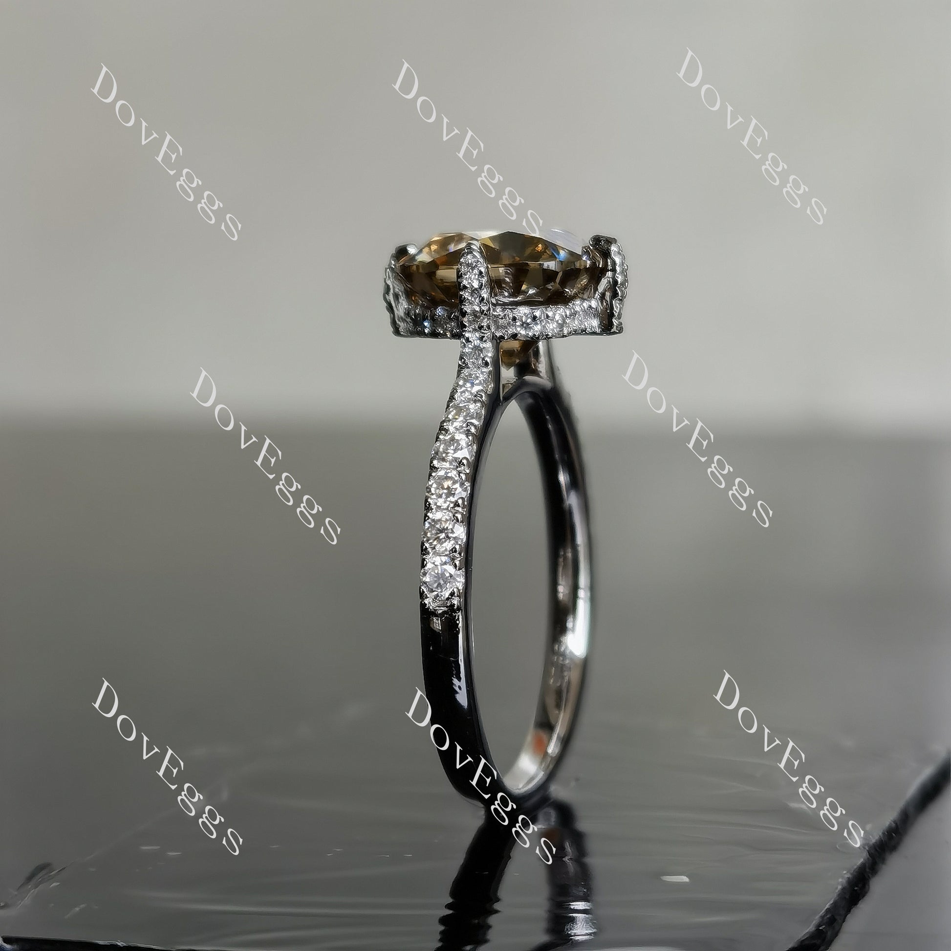 Center stone: 3ct(8.5mm), cushion H&A cut, champagne moissanite, VS1-VVS1 clarity
